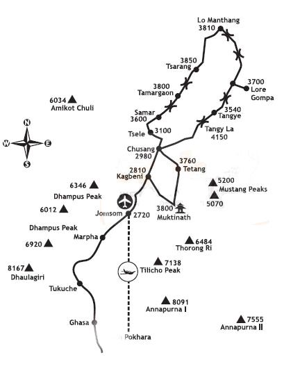 Chhuksang to Jomsom [2700/8,856ft]: 6-7 hrs.Included meals:BLD